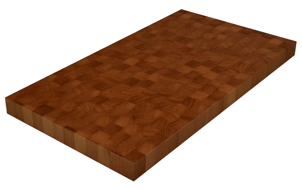 End grain countertops are constructed with square or rectangular blocks arranged with the growth rings facing up. This style is generally used for heavy working surfaces.